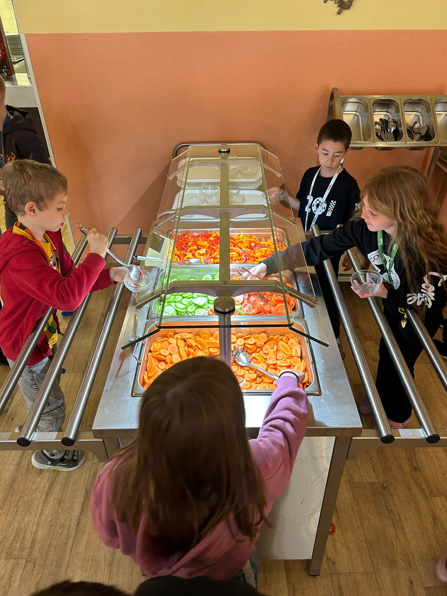 S radostí oznamujeme, že jsme pro děti nově připravili samoobslužný ovocno-zeleninový bar. Děti, které se stravují ve školní jídelně, si zde mohou samostatně vybrat a nandat čerstvé ovoce a zeleninu podle své chuti. Bar je založen na jednoduchém principu — děti si berou tolik, kolik skutečně snědí. Podporujeme tak nejen zdravé stravovací návyky, ale také samostatnost a zodpovědnost dětí při výběru jídla.